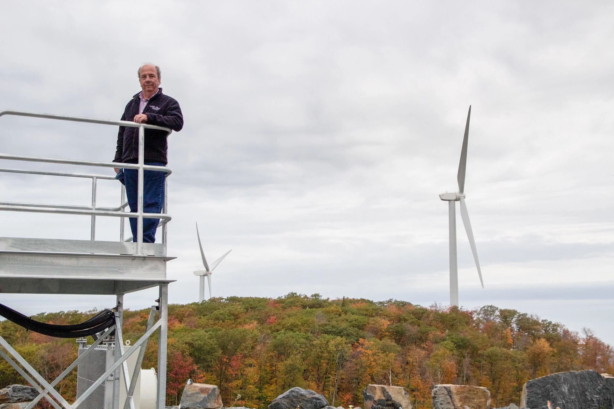 John Zimmerman at the Milton and Georgia Vermont wind farm—a 10 megawatt, four turbine, generation project that was placed in service in December of 2012 and has since become the highest performing wind farm in Vermont. Photo by Dorothy Weicker.