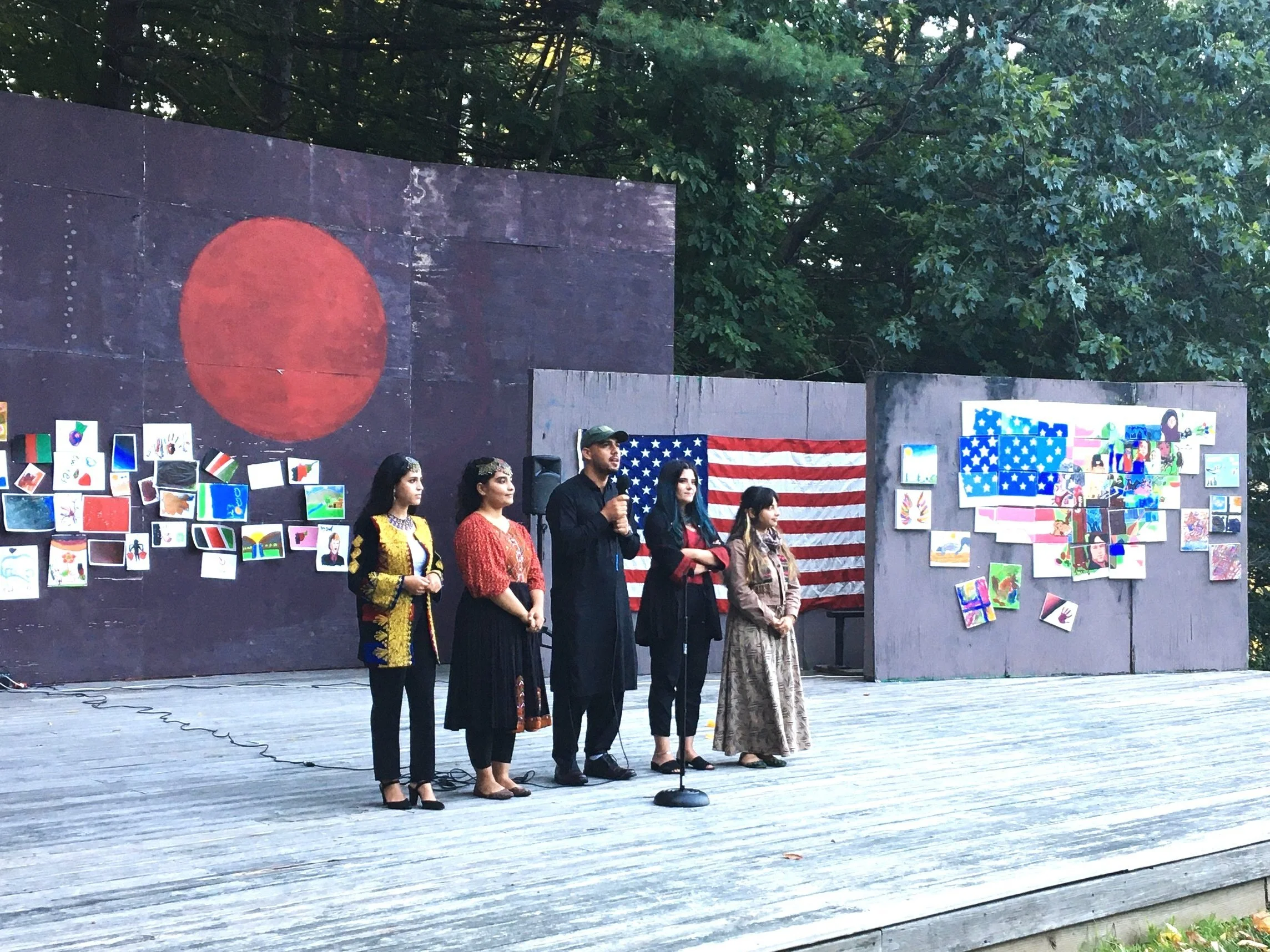 Brattleboro’s River Gallery School of Art hosted the group for the first three days where they drew, painted, and made folded paper crafts. They closed out the week at Epsilon Spires, an event space with enough room for the group to keep their feet up and learn some traditional Afghan folk dances. The Sunday after camp ended, campers and their families reconvened at a local outdoor pavilion to share food, see the completed artwork, and enjoy a performance of the dances learned during the week.