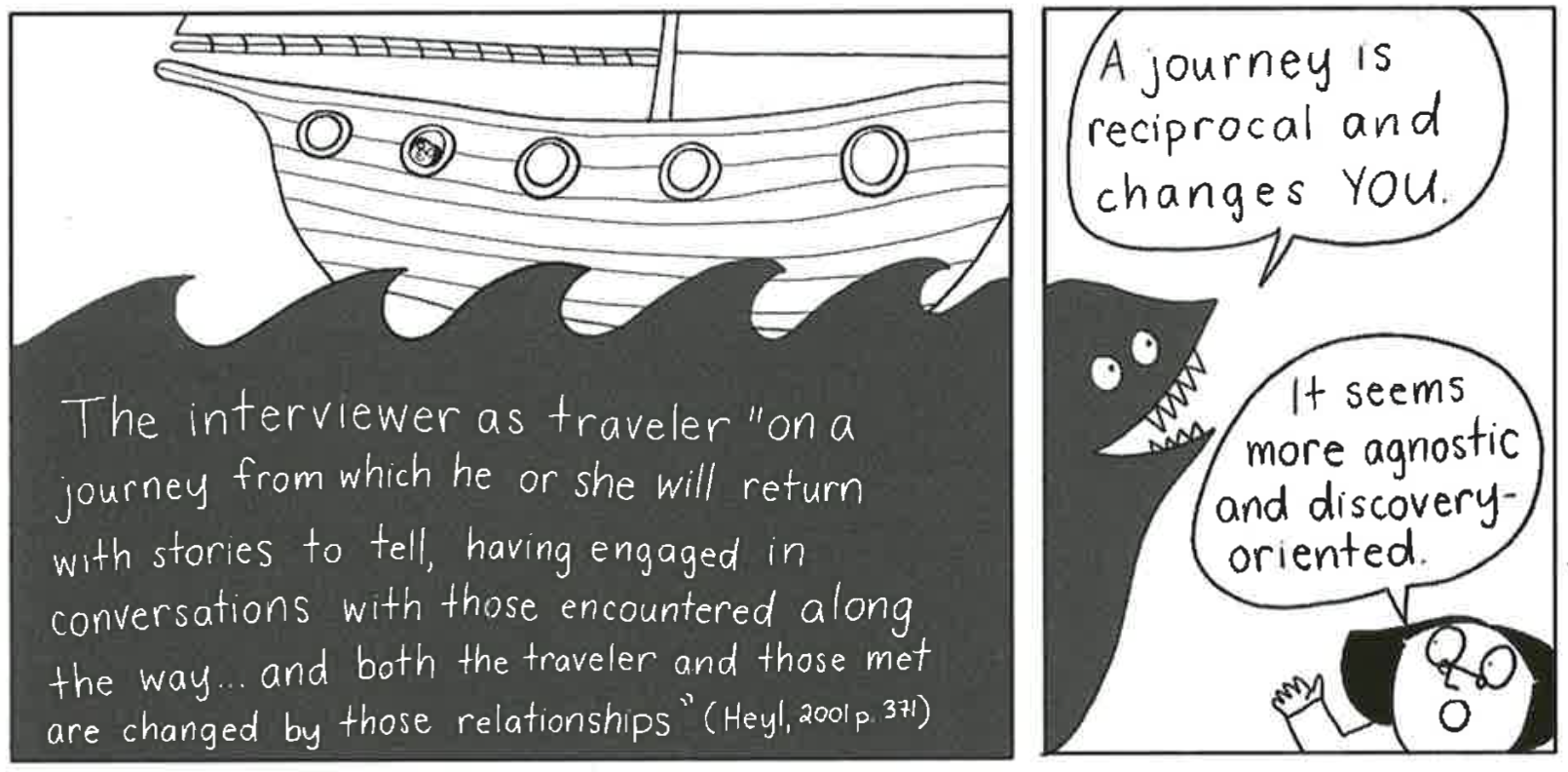 The balancing act of wanting to zero in on specific themes or topics during an interview while also leaving space for the interviewee to take the lead in what they want to share. People shared experiences of sitting back and letting an interviewee expand in any direction they like, and at other times trying to pause or redirect the interview.